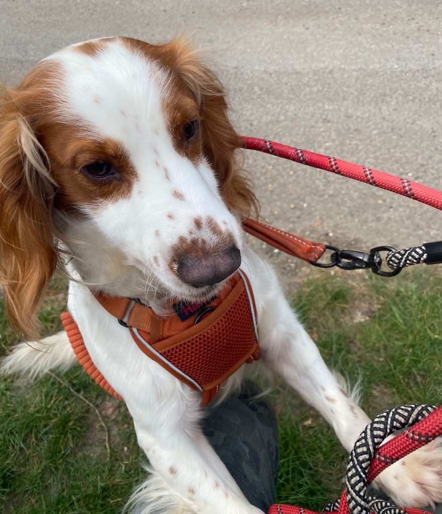 Mojo loves a walk but canāt be let off the lead, in true Spaniel style heāll follow his nose, forgetting he has ears!